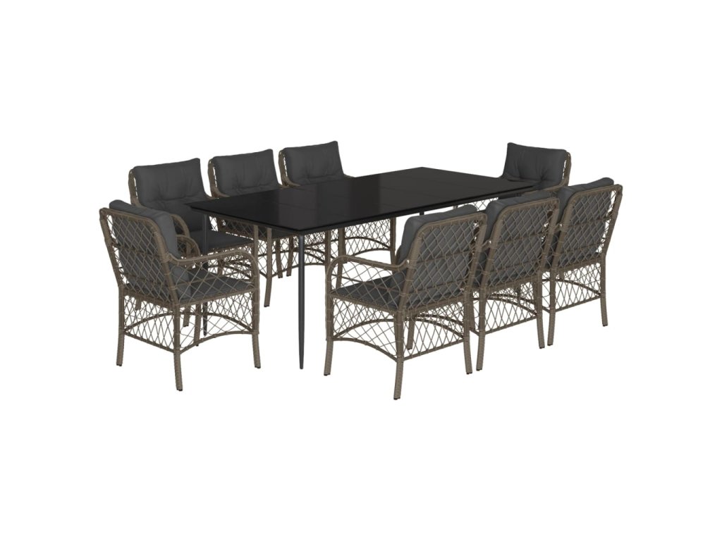 vidaXL 9-dielna záhradná jedálenská sada s podložkami sivá polyratan