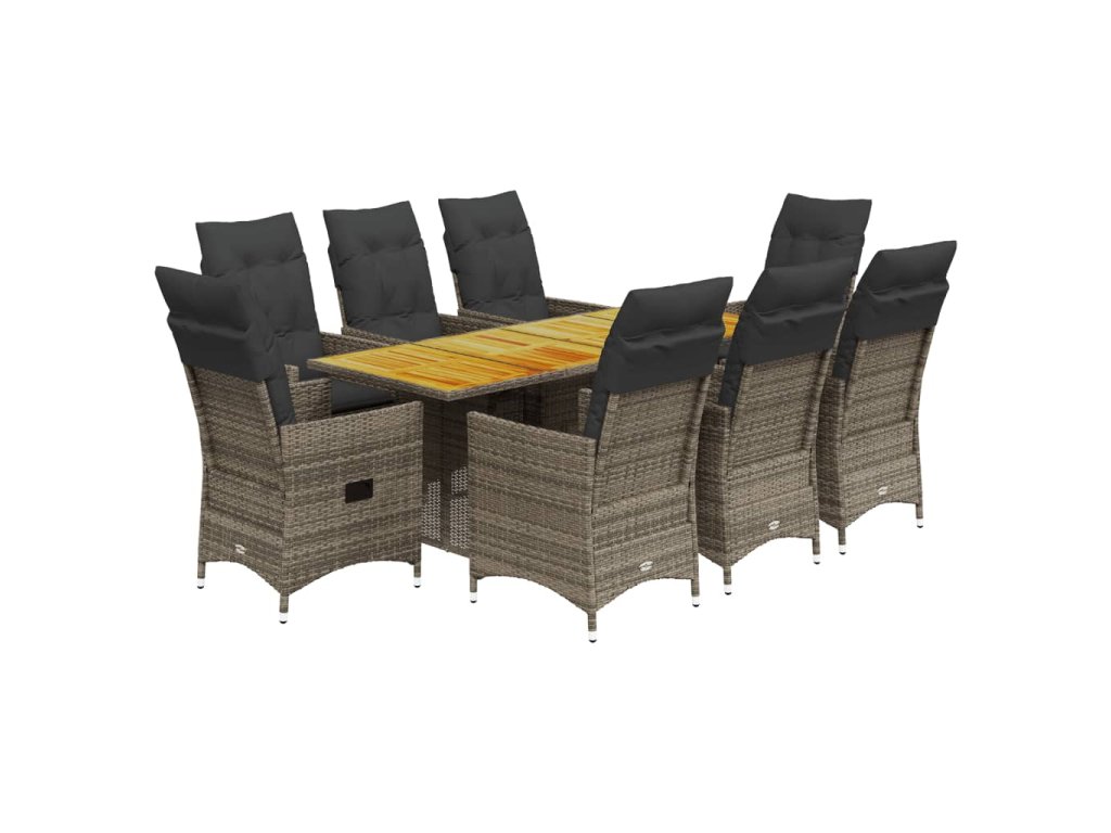 vidaXL 9-dielna záhradná jedálenská sada s podložkami sivá polyratan