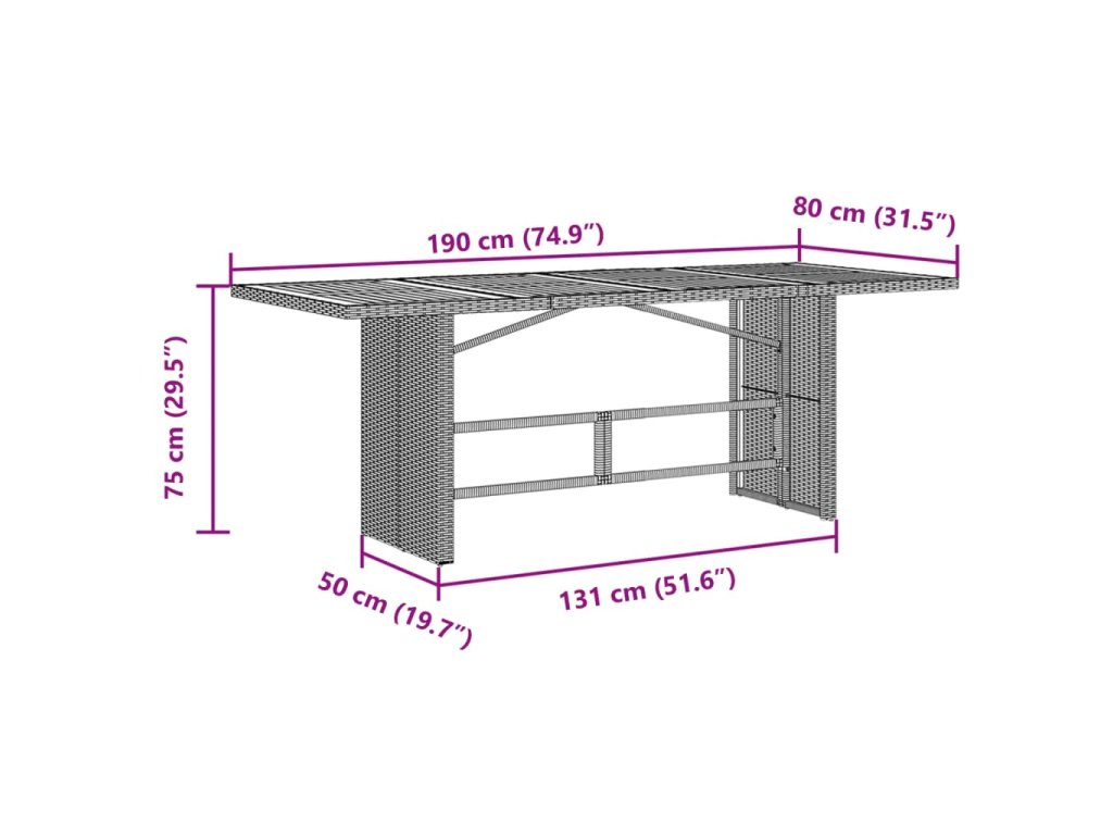 - Stabilná a ľahko čistiteľná stolová doska: Tento záhradný stôl má dosku z akáciového dreva, ktorá je stabilná, odolná a ľahko sa čistí vlhkou handričkou.