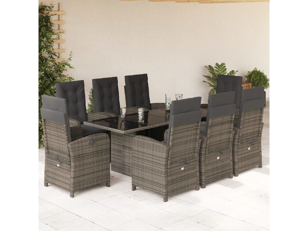 vidaXL 9-dielna záhradná jedálenská sada s podložkami sivá polyratan