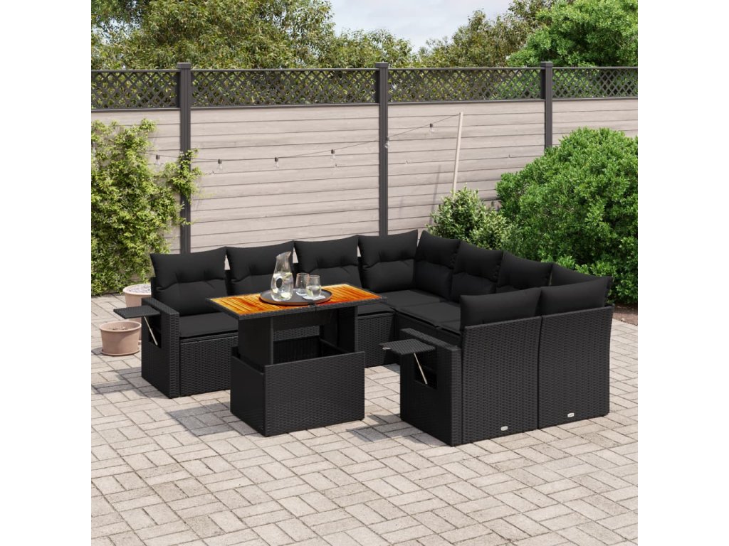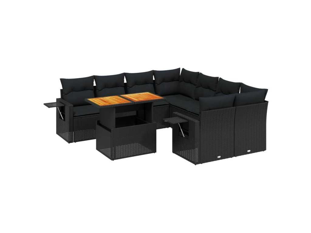 vidaXL 9-dielna záhradná jedálenská sada s vankúšmi čierna polyratan
