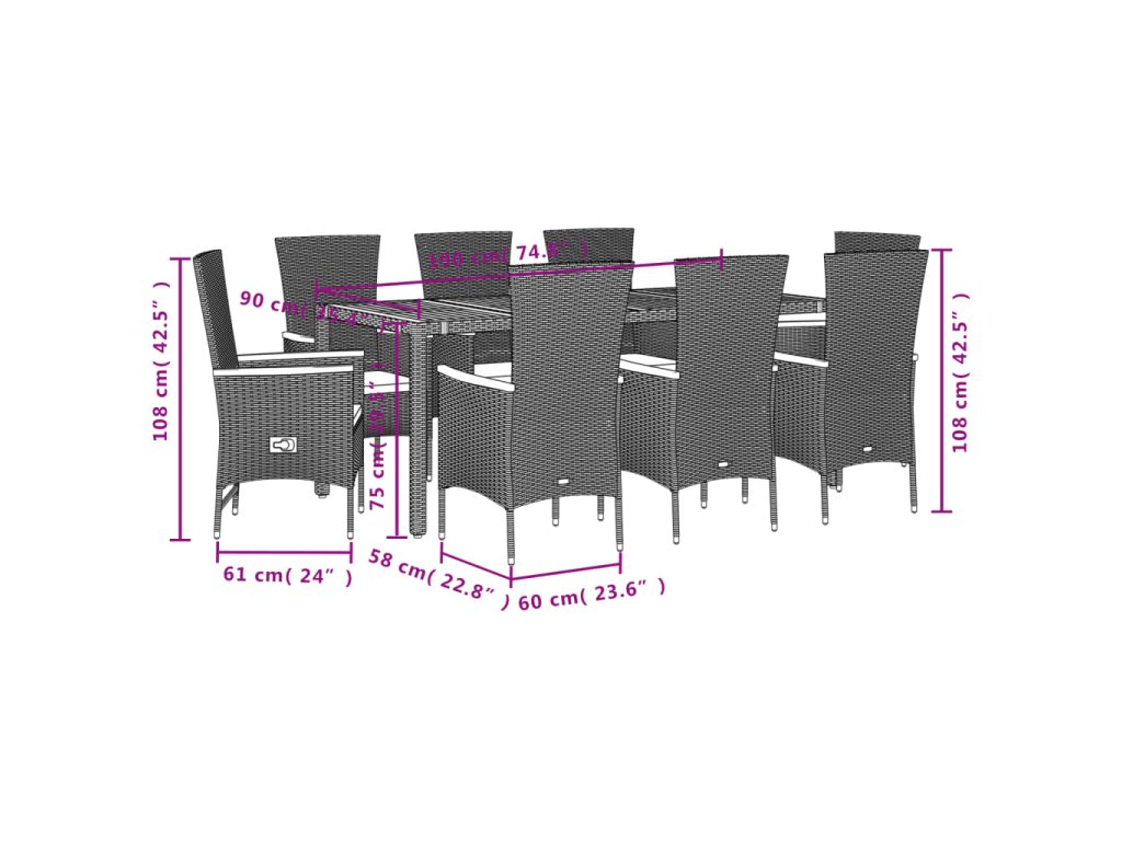 vidaXL 9-dielna záhradná jedálenská sada s vankúšmi čierna polyratan