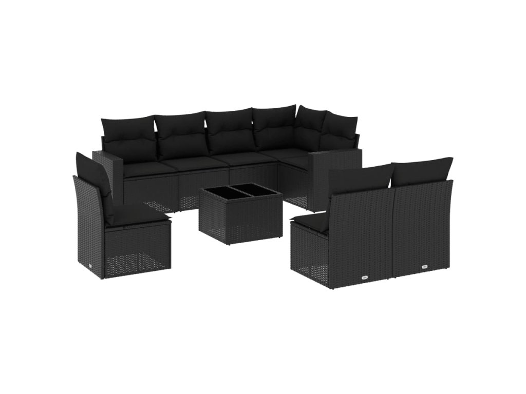 vidaXL 9-dielna záhradná jedálenská sada s vankúšmi čierna polyratan