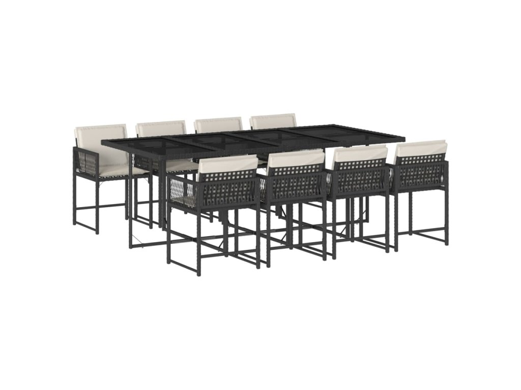 vidaXL 9-dielna záhradná jedálenská sada s vankúšmi čierna polyratan