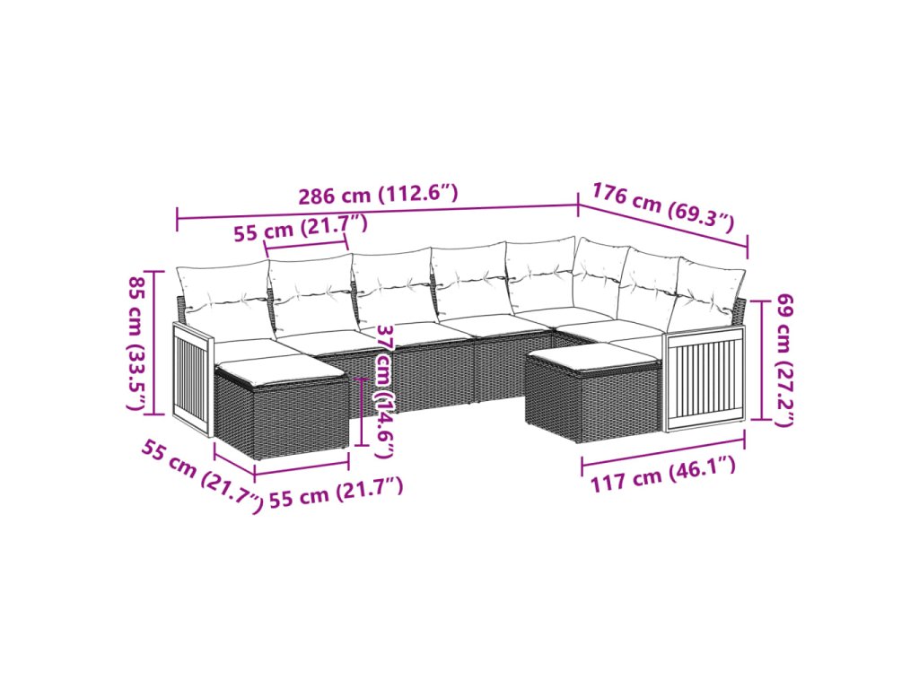 - Modulárny dizajn: Táto súprava vonkajšieho nábytku má modulárny dizajn, vďaka čomu je úplne flexibilná a ľahko sa premiestňuje, takže si môžete vytvoriť prispôsobené usporiadanie vonkajšieho nábytku.