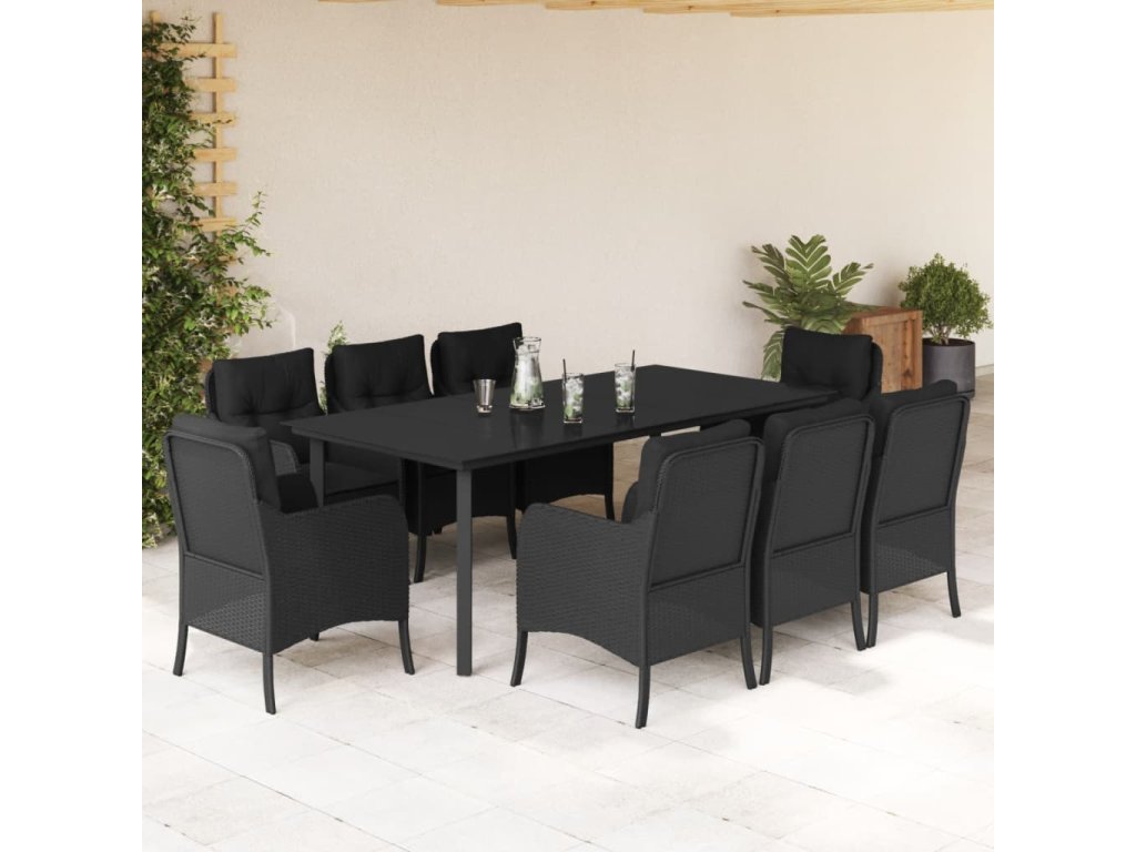 vidaXL 9-dielna záhradná jedálenská sada s vankúšmi čierna polyratan