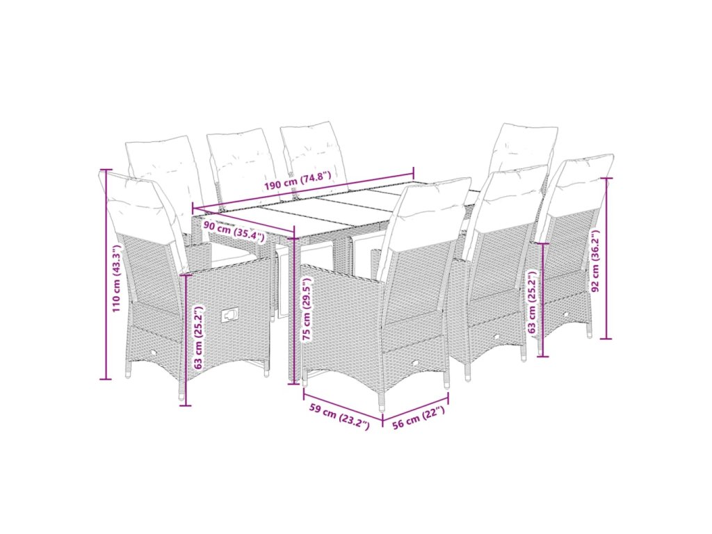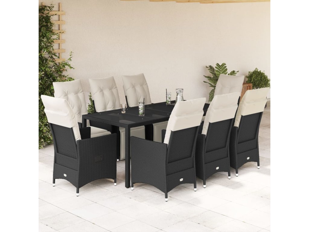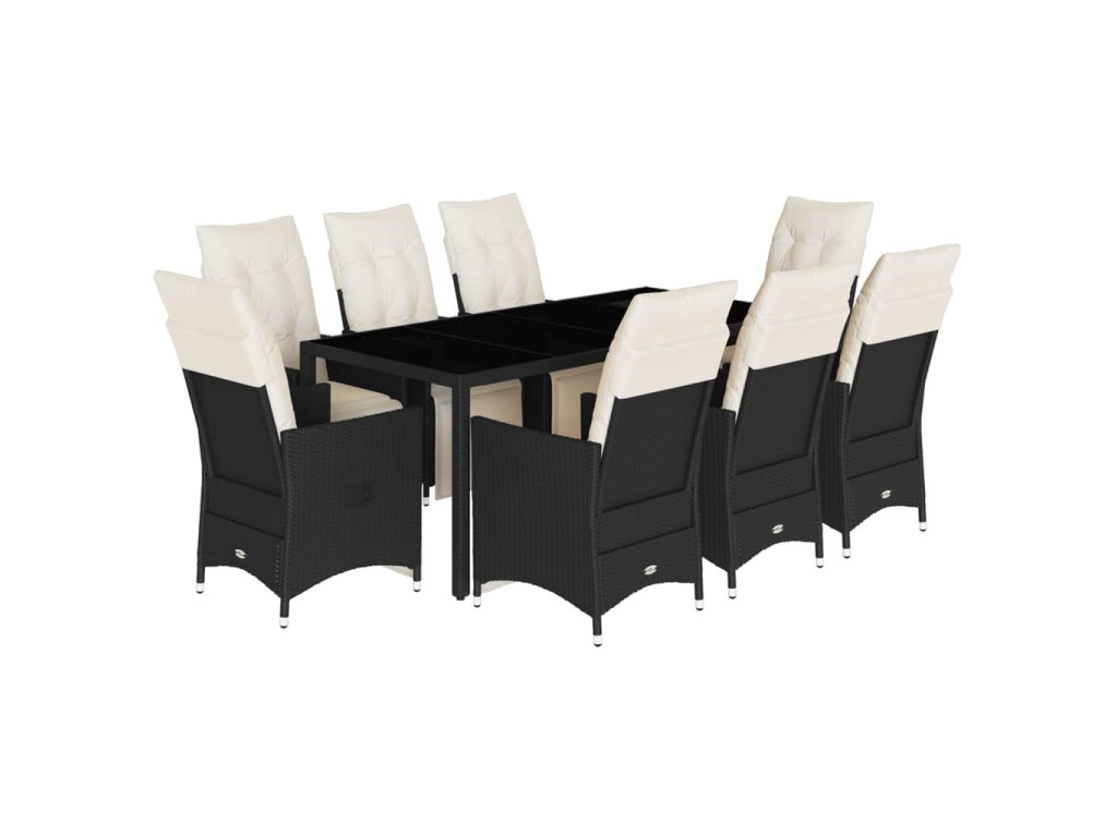 vidaXL 9-dielna záhradná jedálenská sada s vankúšmi čierna polyratan