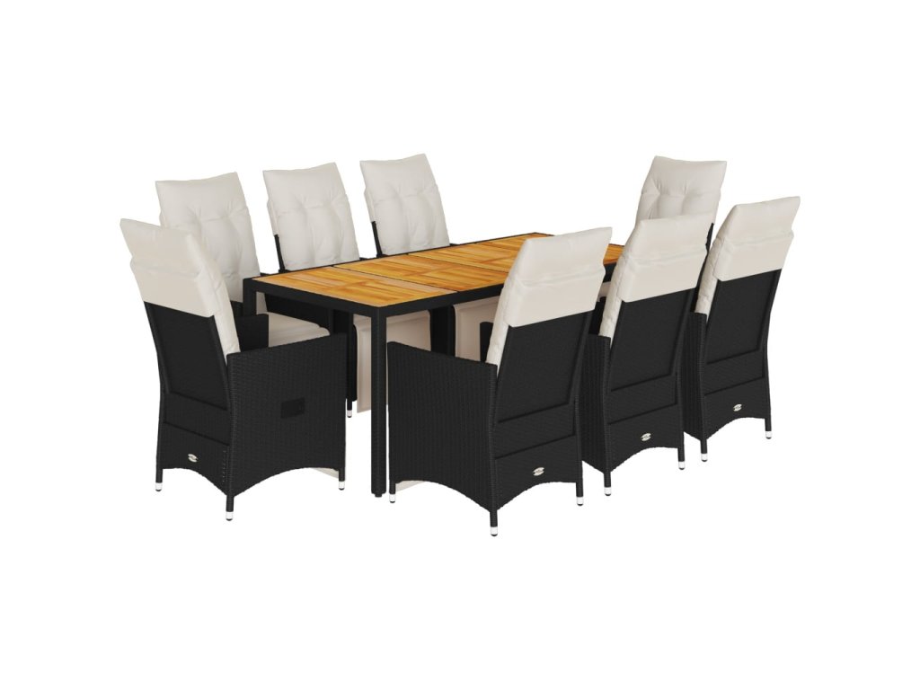 vidaXL 9-dielna záhradná jedálenská sada s vankúšmi čierna polyratan