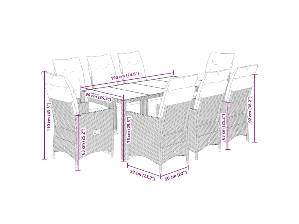 - Materiál: PE ratan, oceľ, masívne akáciové drevo s olejovým náterom