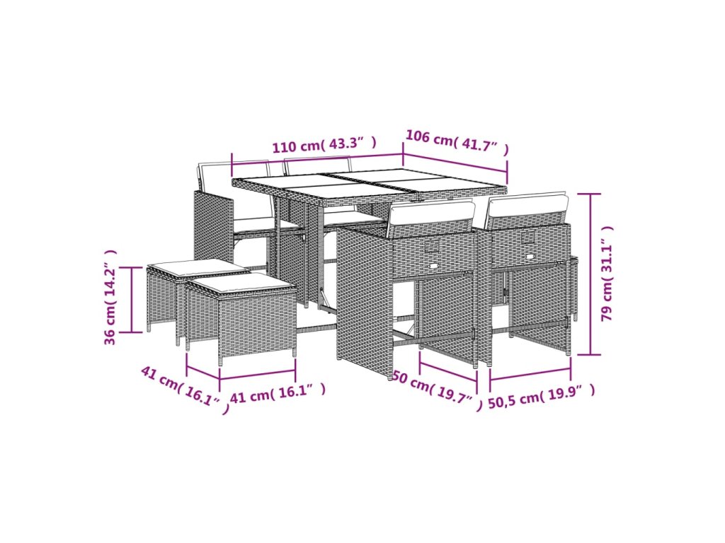 vidaXL 9-dielna záhradná jedálenská sada s vankúšmi čierna polyratan