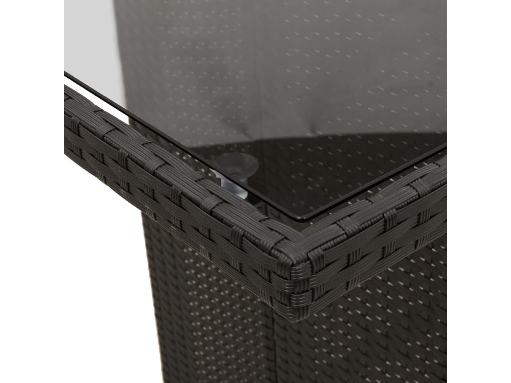 - Materiál: PE ratan, oceľ s práškovou povrchovou úpravou, tvrdené sklo