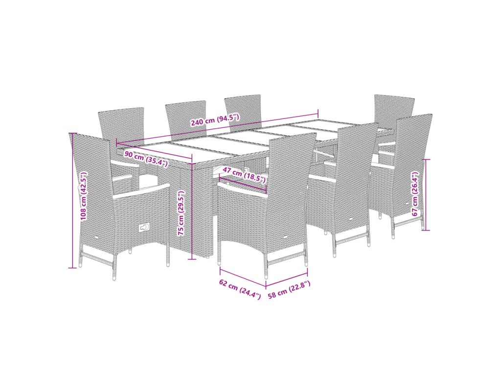 vidaXL 9-dielna záhradná jedálenská sada s vankúšmi čierna polyratan