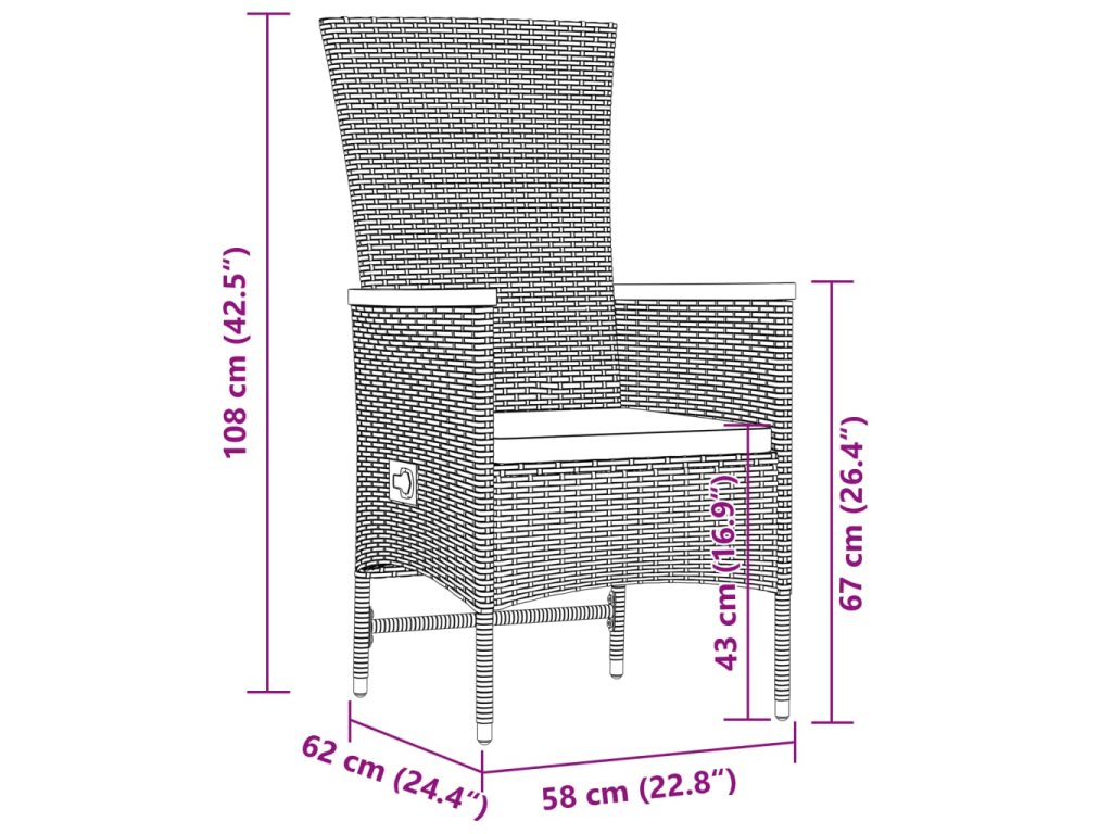 - Materiál: PE ratan, práškovaná oceľ, masívne akáciové drevo s olejovým náterom