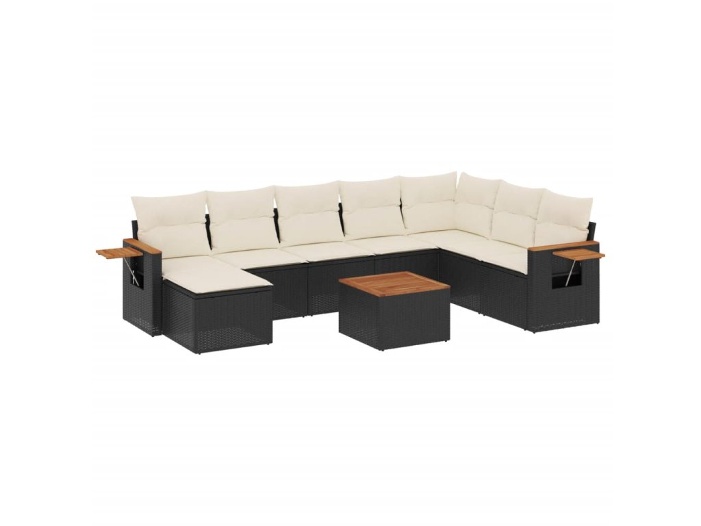 vidaXL 9-dielna záhradná jedálenská sada s vankúšmi čierna polyratan