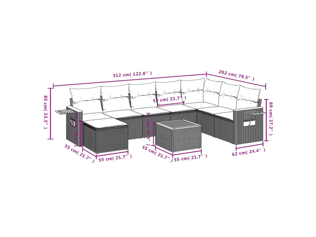 - Modulárny dizajn: Táto súprava vonkajšieho nábytku má modulárny dizajn, vďaka čomu je úplne flexibilná a ľahko sa premiestňuje, takže si môžete vytvoriť prispôsobené usporiadanie vonkajšieho nábytku.