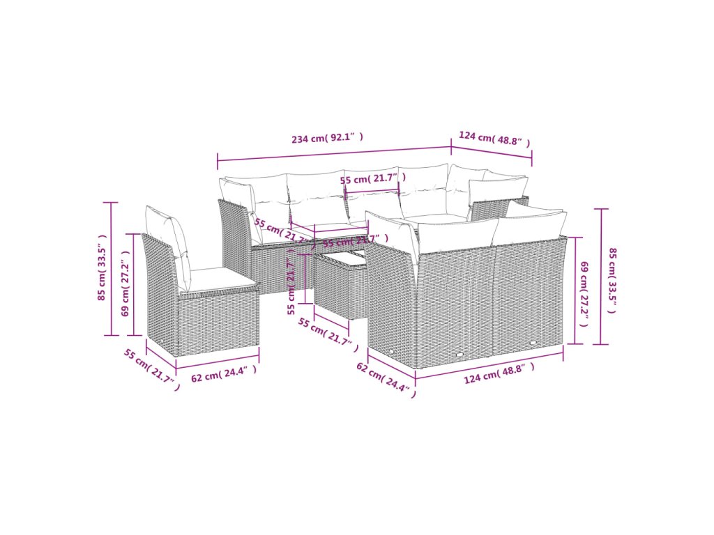 vidaXL 9-dielna záhradná jedálenská sada s vankúšmi čierna polyratan