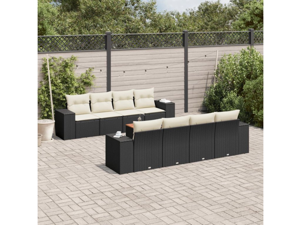 vidaXL 9-dielna záhradná jedálenská sada s vankúšmi čierna polyratan