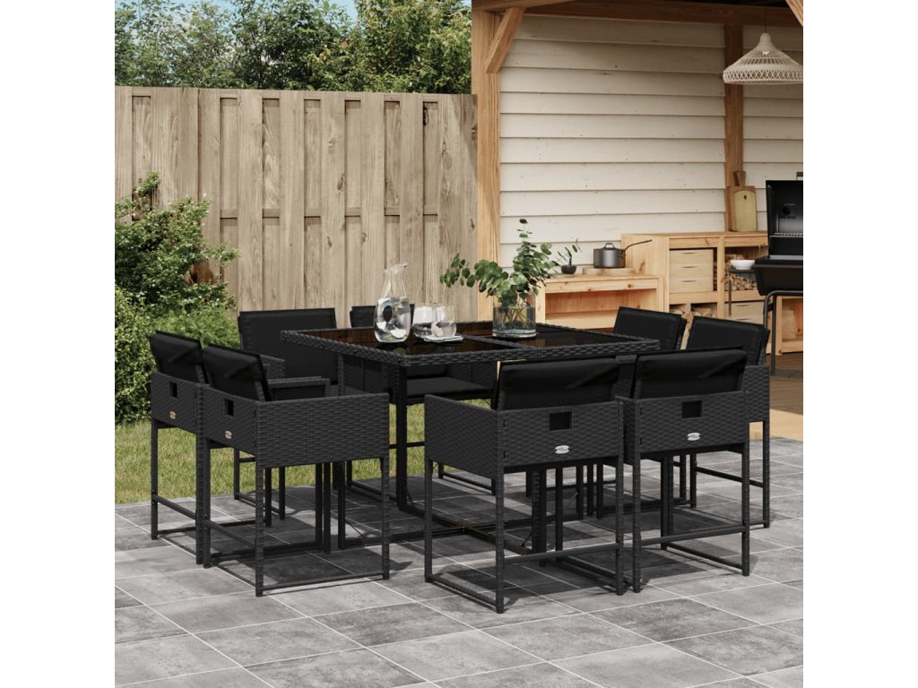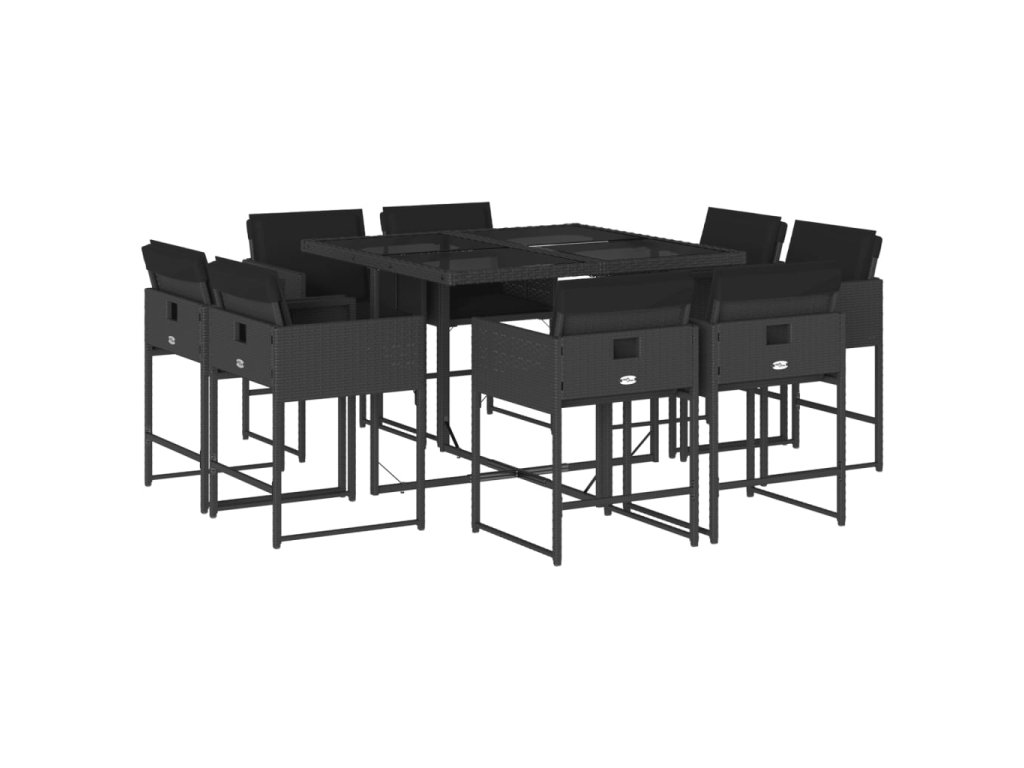 vidaXL 9-dielna záhradná jedálenská sada s vankúšmi čierna polyratan