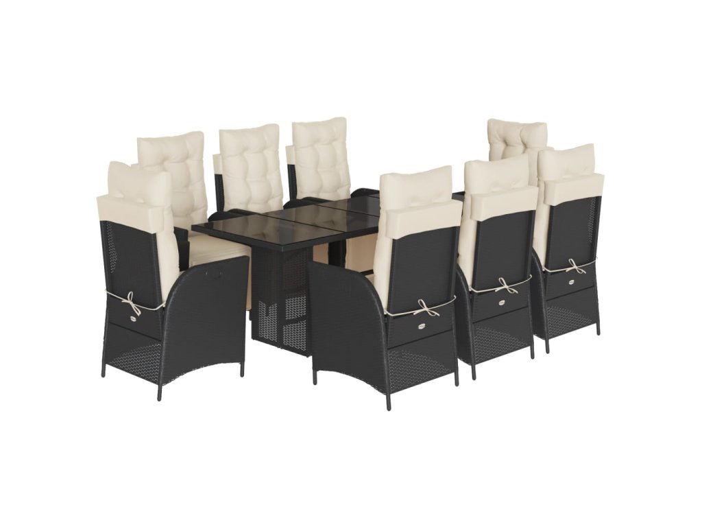 vidaXL 9-dielna záhradná jedálenská sada s vankúšmi čierna polyratan