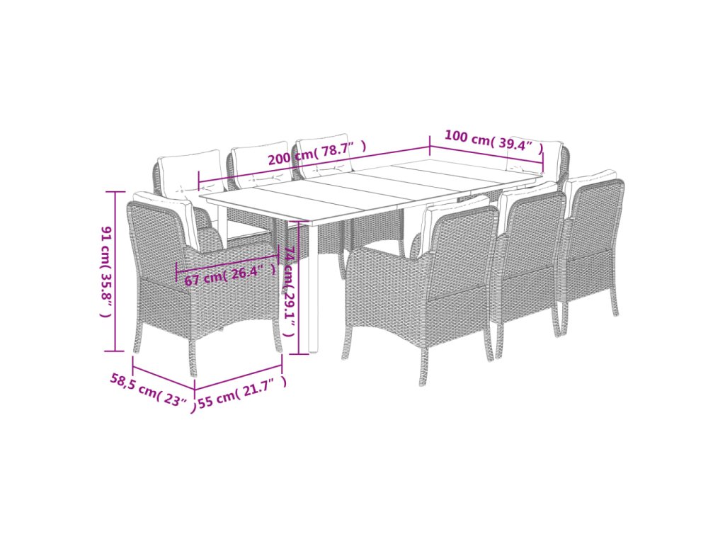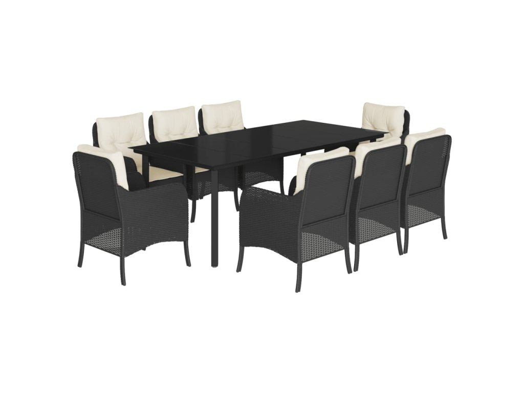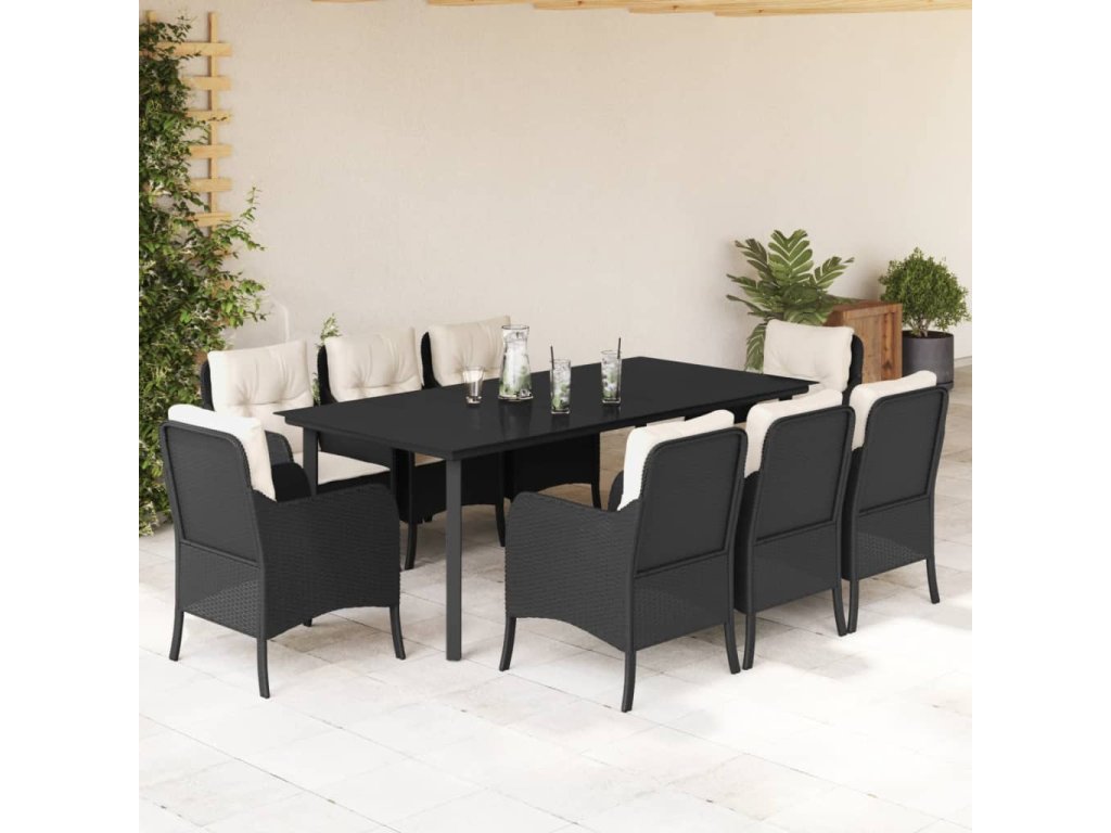 vidaXL 9-dielna záhradná jedálenská sada s vankúšmi čierna polyratan
