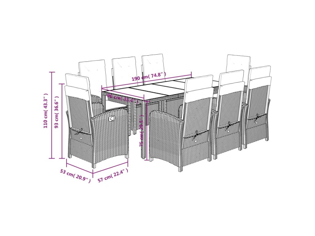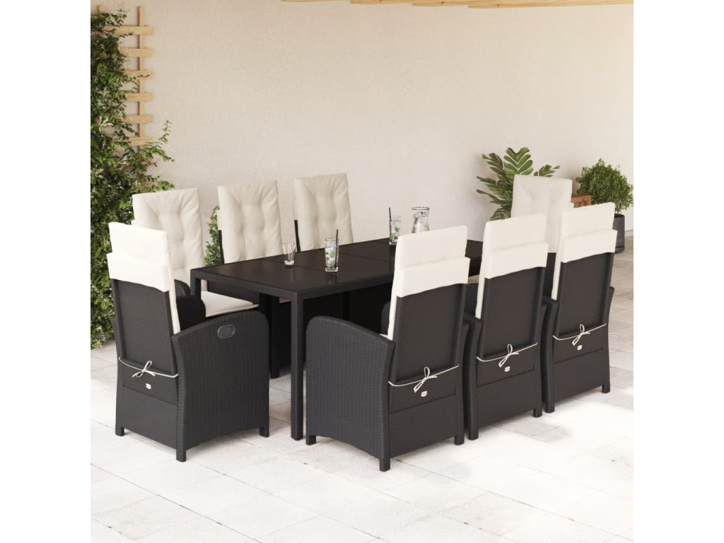 vidaXL 9-dielna záhradná jedálenská sada s vankúšmi čierna polyratan