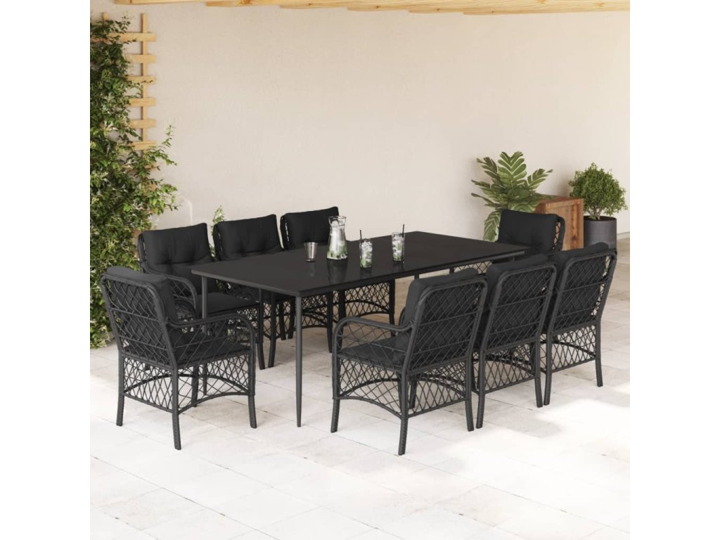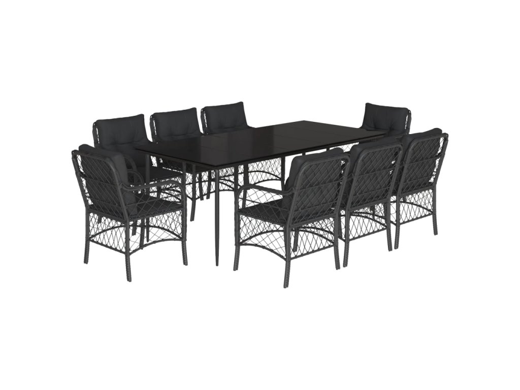 vidaXL 9-dielna záhradná jedálenská sada s vankúšmi čierna polyratan