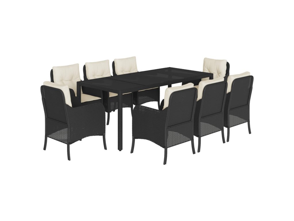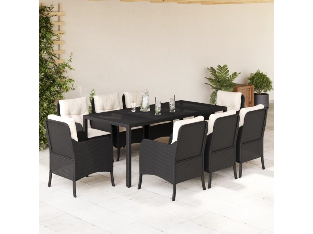 vidaXL 9-dielna záhradná jedálenská sada s vankúšmi čierna polyratan