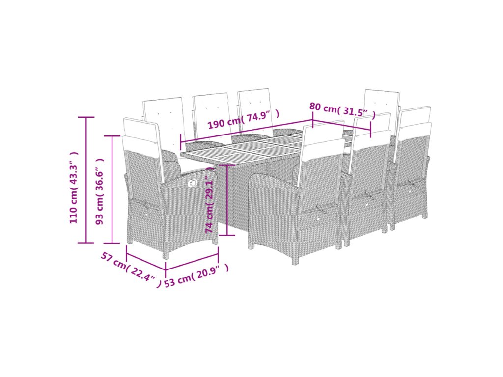 Táto záhradná jedálenská súprava je skvelou voľbou na stolovanie pod holým nebom alebo len tak na oddych v záhrade, na dvore alebo na terase.