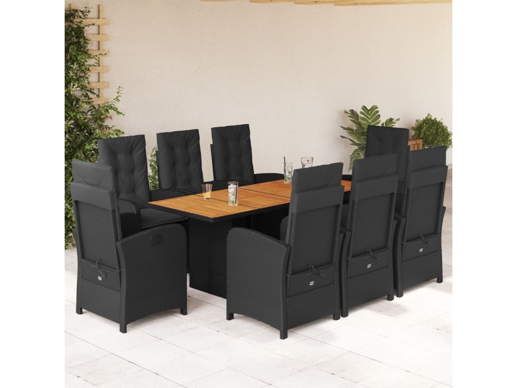 vidaXL 9-dielna záhradná jedálenská sada s vankúšmi čierna polyratan