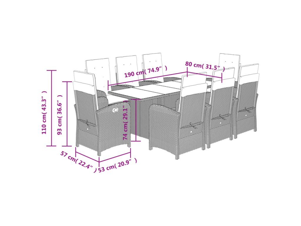 vidaXL 9-dielna záhradná jedálenská sada s vankúšmi čierna polyratan