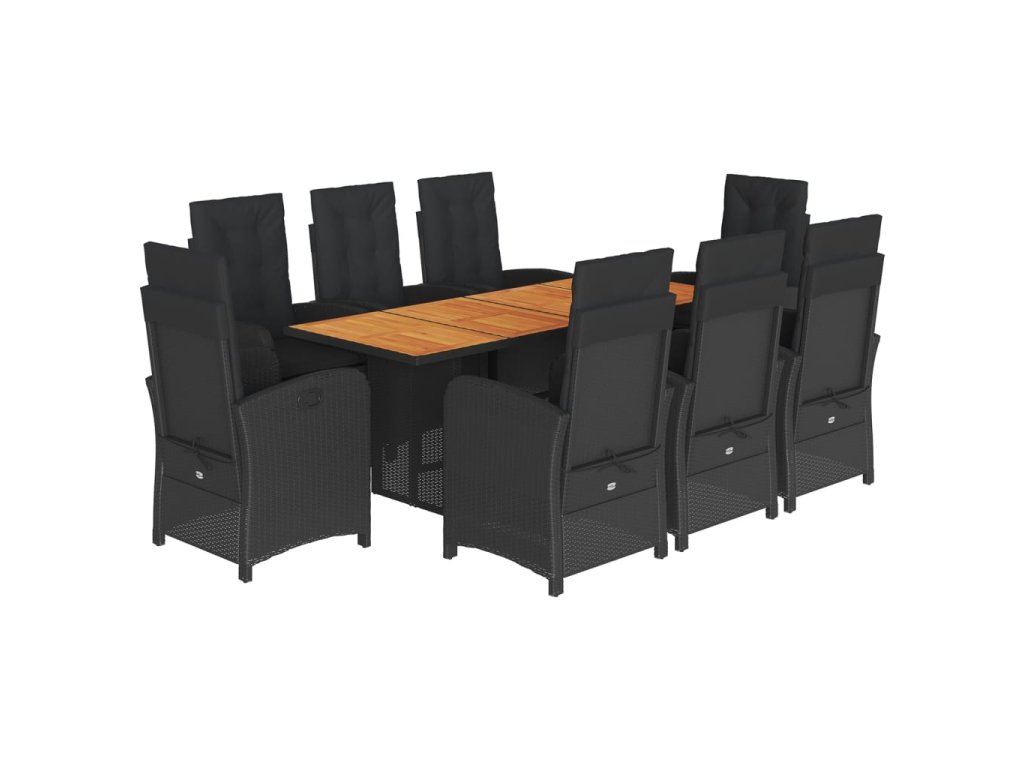 vidaXL 9-dielna záhradná jedálenská sada s vankúšmi čierna polyratan