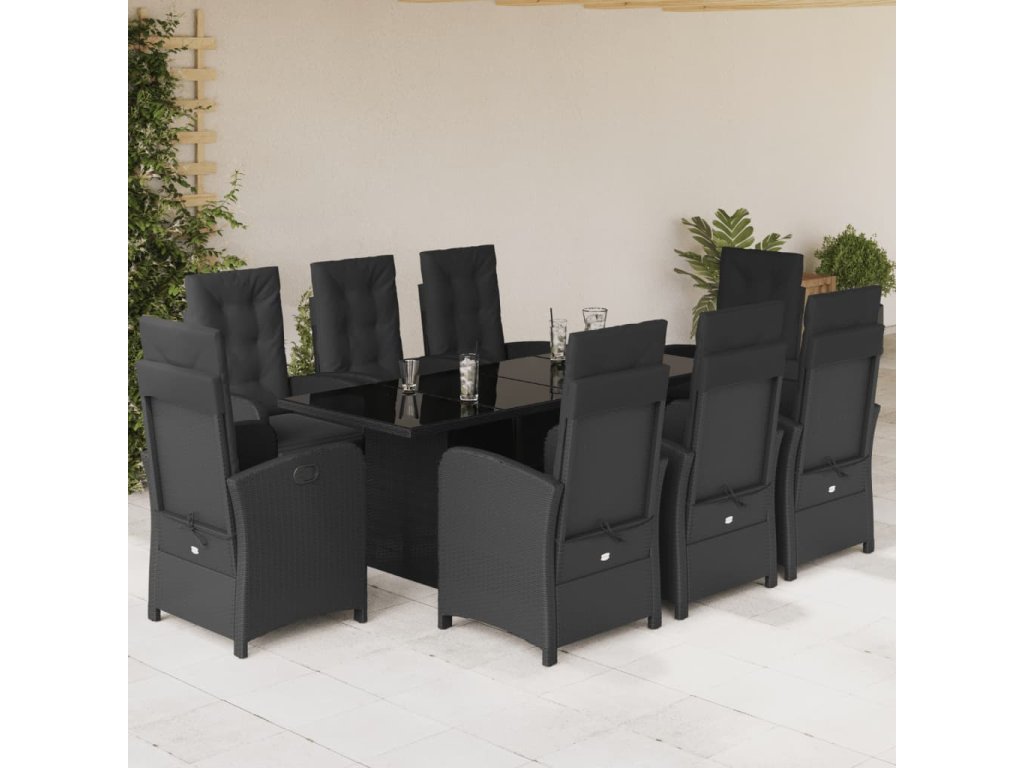vidaXL 9-dielna záhradná jedálenská sada s vankúšmi čierna polyratan