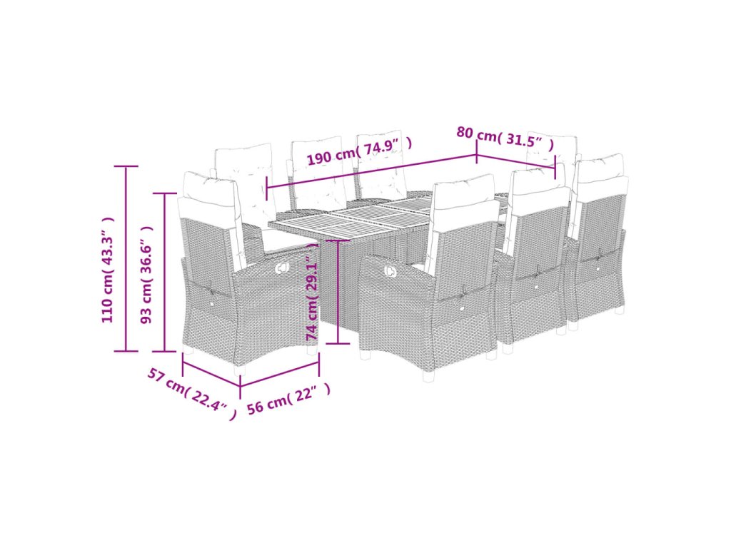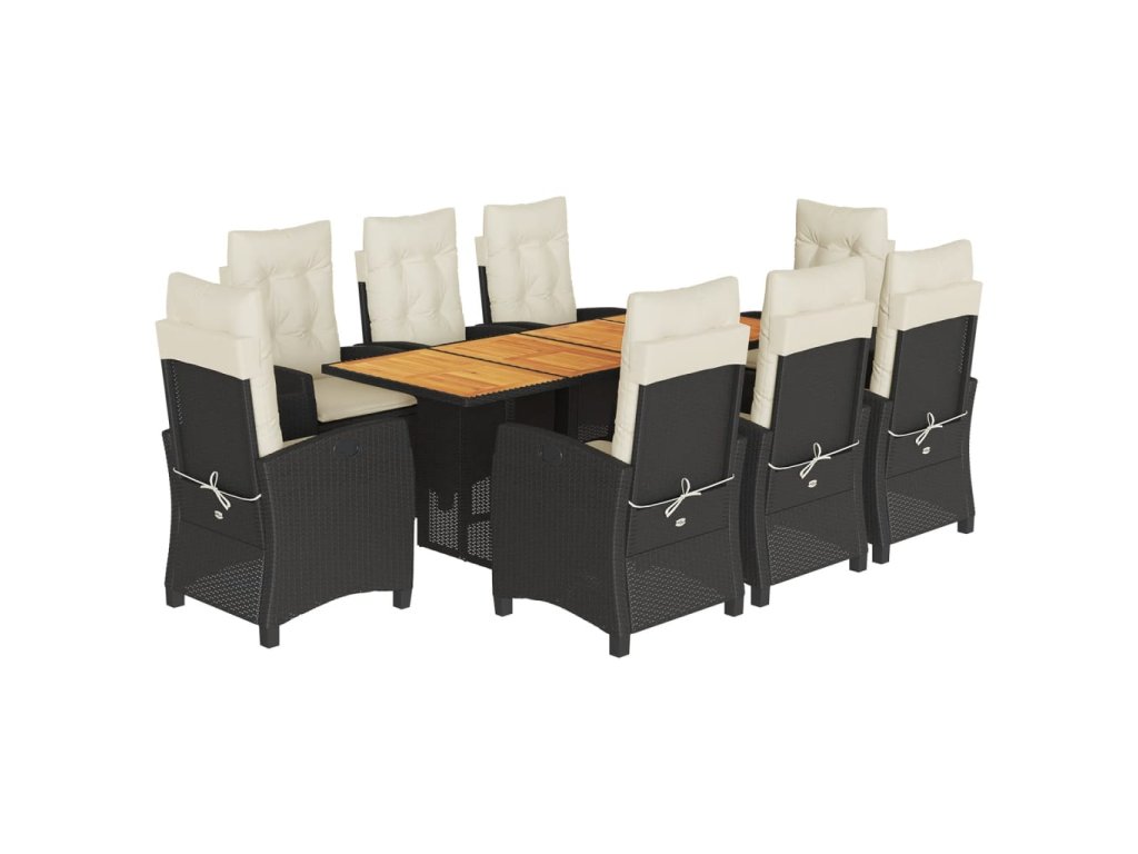 vidaXL 9-dielna záhradná jedálenská sada s vankúšmi čierna polyratan