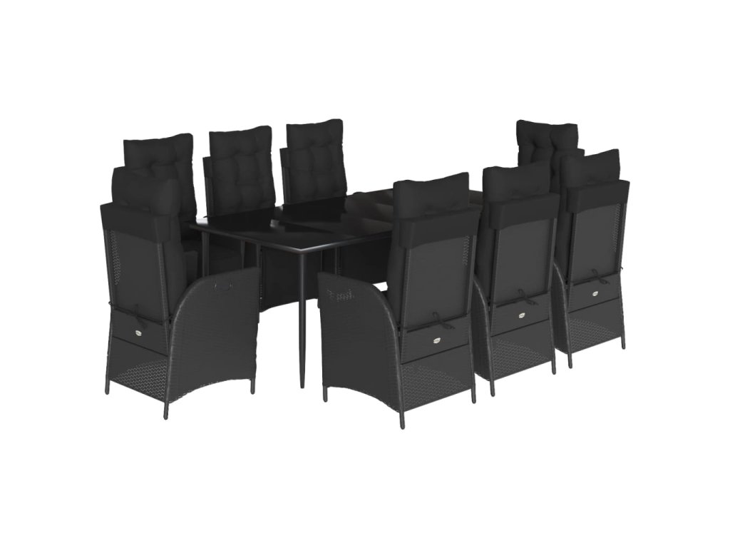 vidaXL 9-dielna záhradná jedálenská sada s vankúšmi čierna polyratan