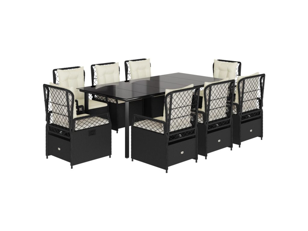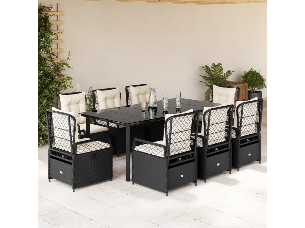 vidaXL 9-dielna záhradná jedálenská sada s vankúšmi čierna polyratan