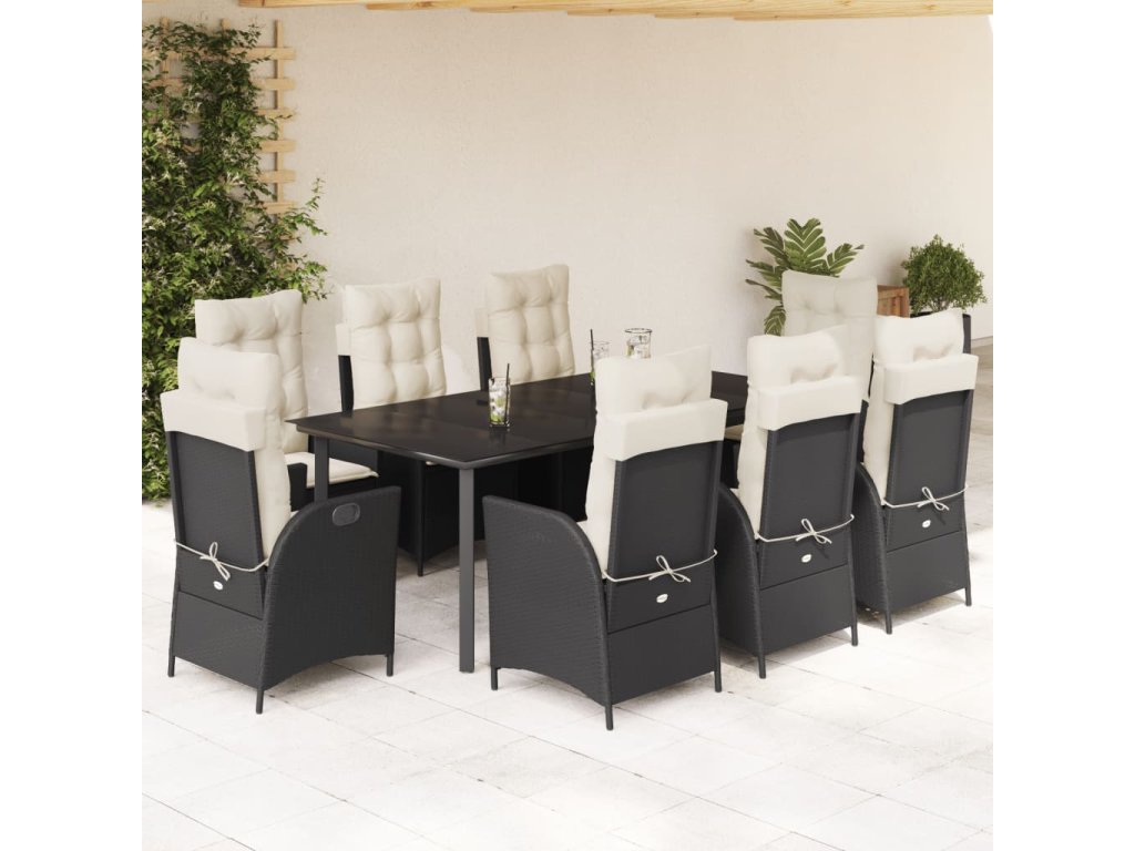 vidaXL 9-dielna záhradná jedálenská sada s vankúšmi čierna polyratan