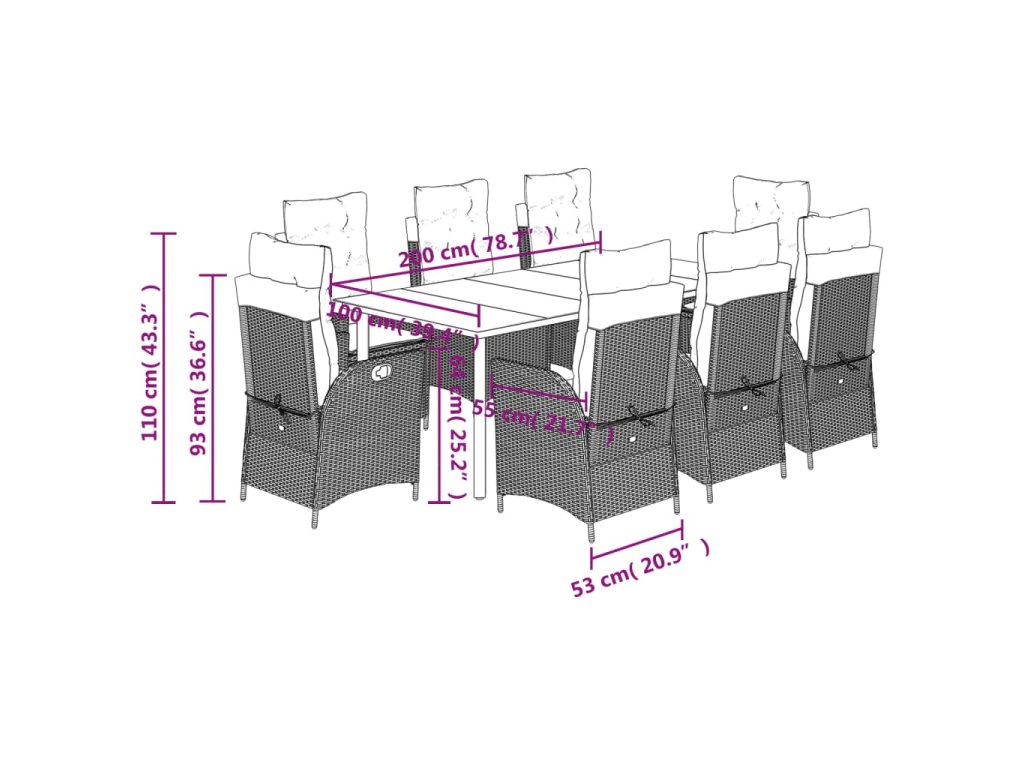 Táto záhradná jedálenská súprava je skvelou voľbou na stolovanie pod holým nebom alebo len tak na oddych v záhrade, na dvore alebo na terase.