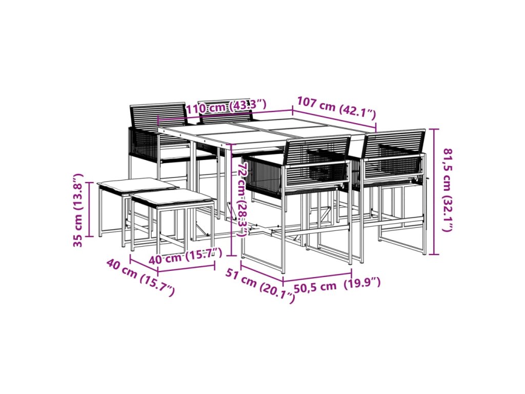 Táto záhradná jedálenská súprava je skvelou voľbou na stolovanie pod holým nebom alebo len tak na oddych v záhrade, na dvore alebo na terase.