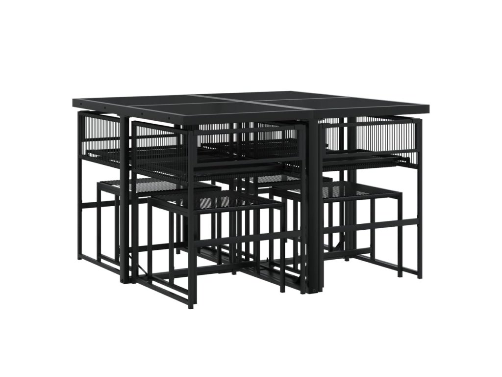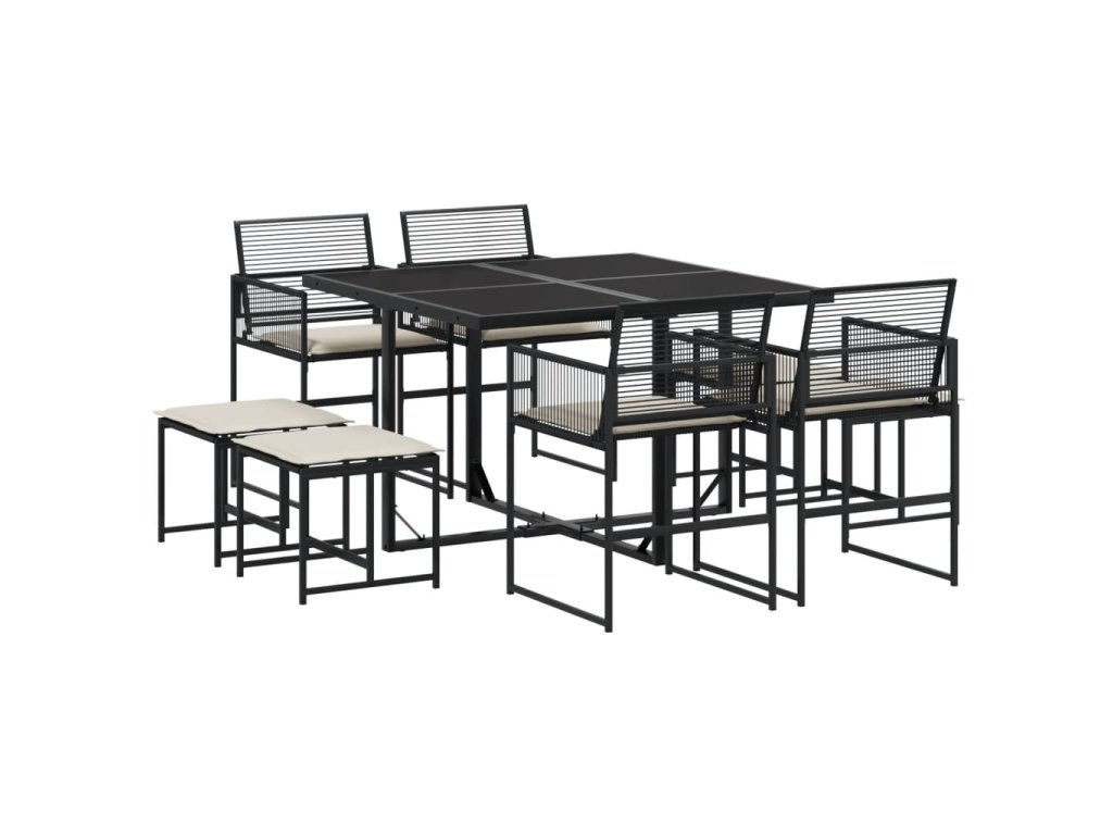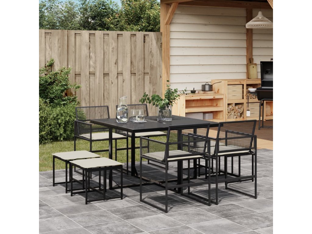 vidaXL 9-dielna záhradná jedálenská sada s vankúšmi čierna polyratan