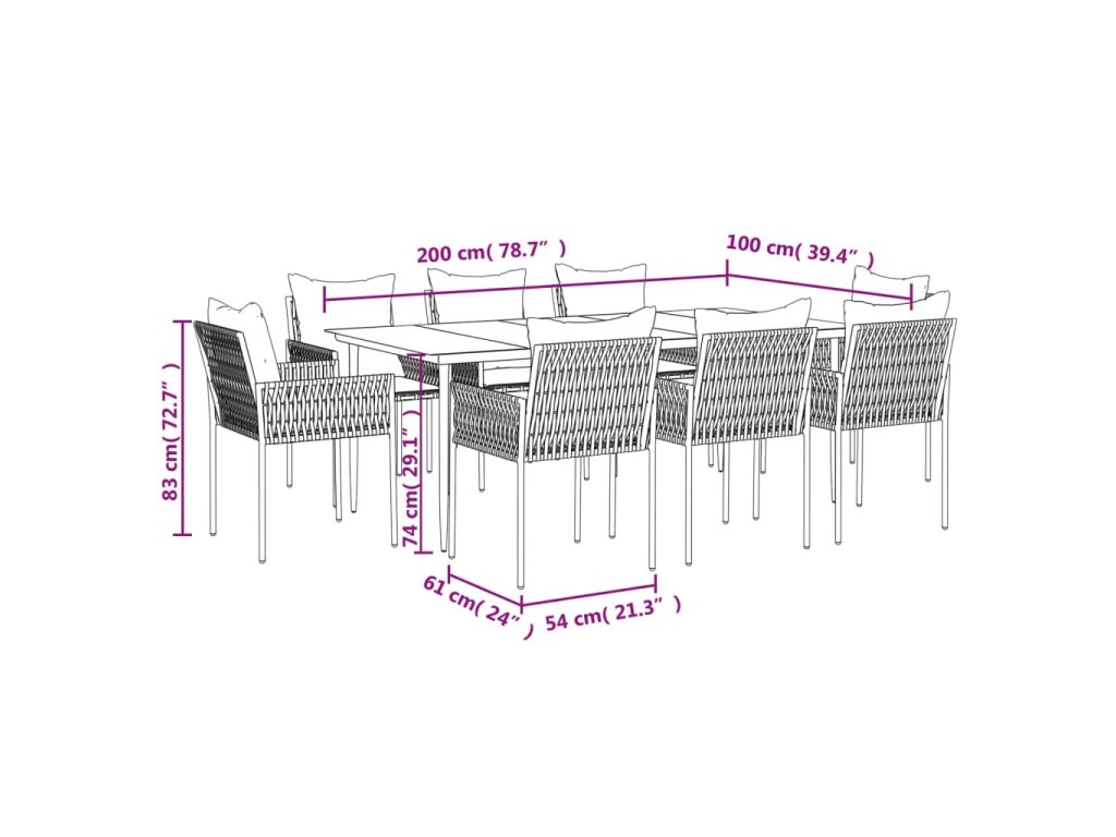 vidaXL 9-dielna záhradná jedálenská sada s vankúšmi polyratan a oceľ