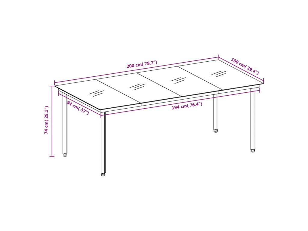 - Rozmery: 200 x 100 x 74 cm (D x Š x V)