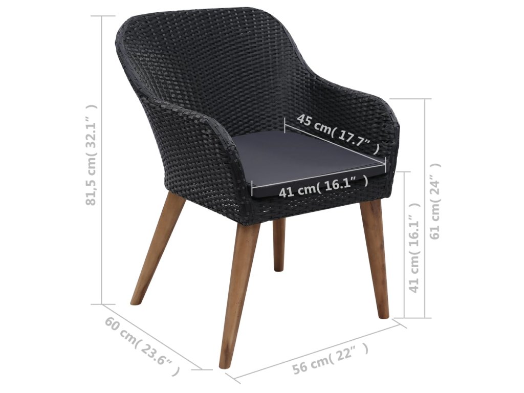 Jedálenský stôl je vyrobený z akáciového masívu s olejovým náterom, vďaka čomu je stabilný, trvácny a ľahko sa udržiava. Jedálenské stoličky majú oceľový rám s práškovou povrchovou úpravou, ktorý je pokrytý PE ratanom, vďaka čomu sú pevné a dajú sa ľahko očistiť. Ergonomický tvar s nahusto vyčalúnenými podložkami na sedadlo prinášajú optimálny komfort. Polyesterové poťahy si nevyžadujú náročnú údržbu. Stačí ich zvliecť a oprať.