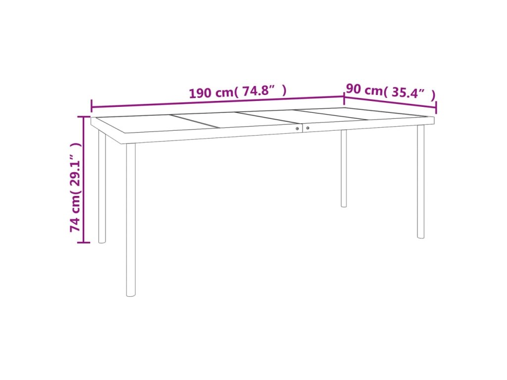 - Rozmery stola: 190 x 90 x 74 cm (D x Š x V)