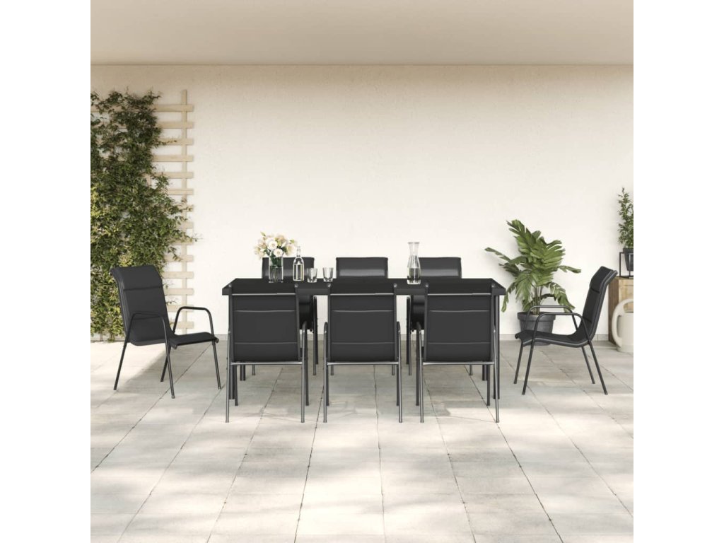 vidaXL 9-dielna záhradná jedálenská súprava čierna oceľ a textilén