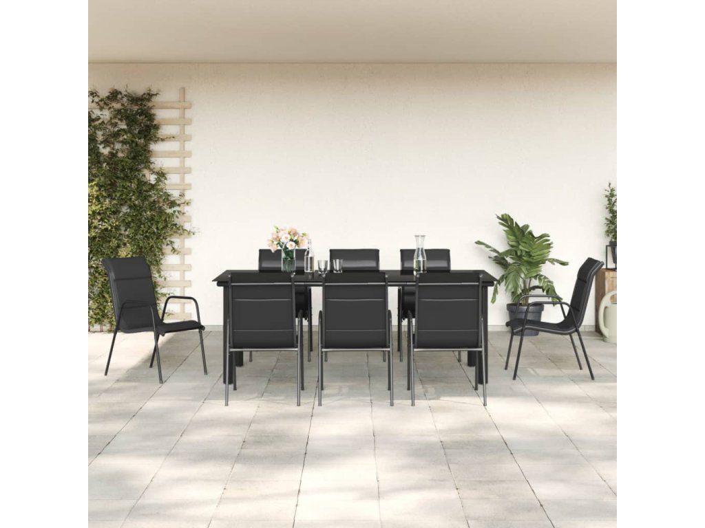 vidaXL 9-dielna záhradná jedálenská súprava čierna oceľ a textilén