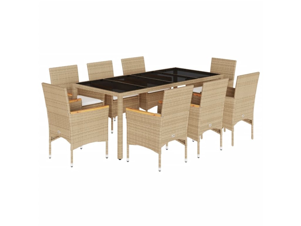 vidaXL 9-dielna záhradná jedálenská súprava+podložky, béžová polyratan