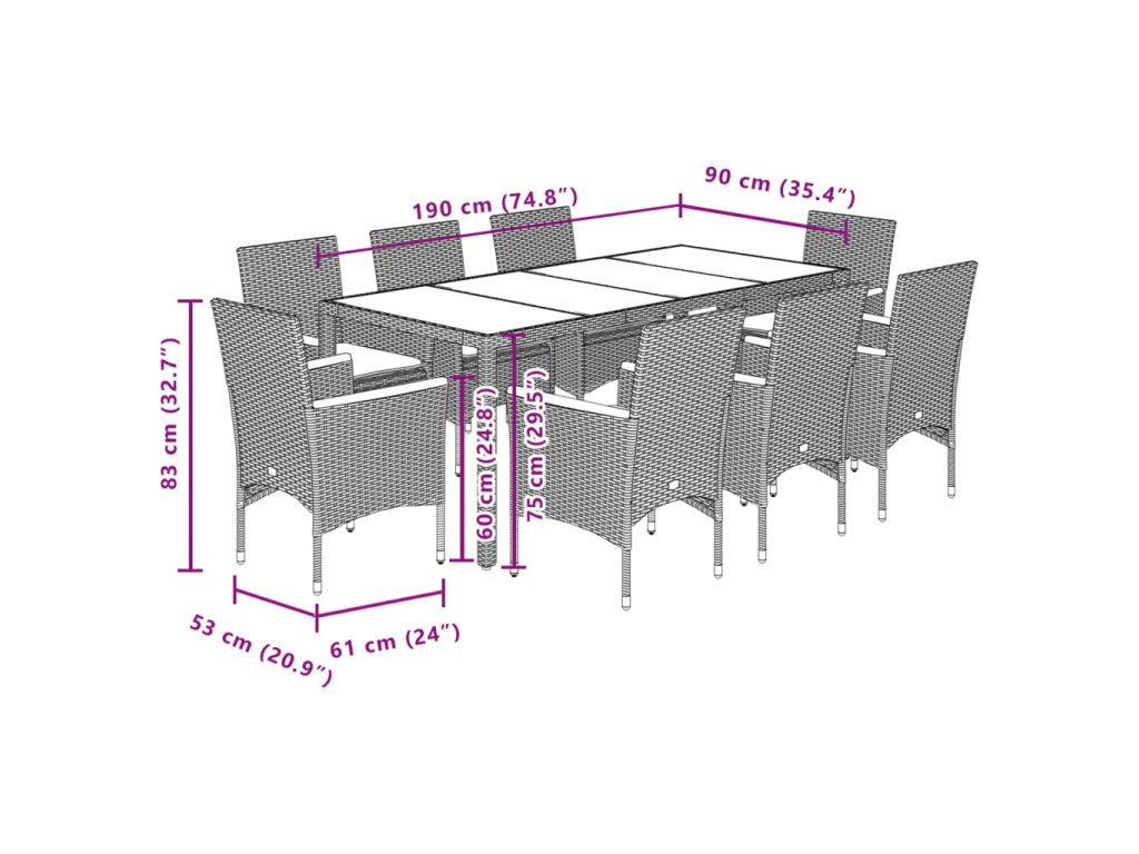 - Materiál: PE ratan, oceľ s práškovou povrchovou úpravou, tvrdené sklo