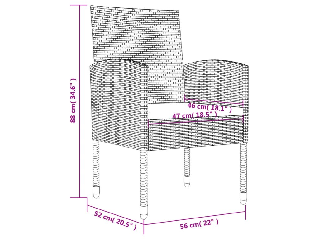 - Pevný rám: Tento záhradný stôl a stolička sú konštruované s oceľovým rámom, ktorý zaisťuje pevnosť a stabilitu.