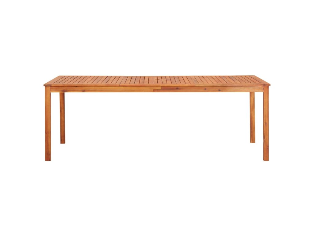 Jedálenský stôl je vyrobený z masívneho akáciového dreva, tvrdého dreva s hustou štruktúrou, vďaka čomu je robustný, odolný a ľahko sa udržiava. Drevenú dosku je možné použiť na uloženie potravín, nápojov a iných predmetov. Tieto jedálenské stoličky s dreveným rámom s olejovou povrchovou úpravou dodávajú vašej terase alebo dvoru klasický vzhľad a vášmu vonkajšiemu priestoru dodávajú prirodzený nádych. Husto polstrované vankúše tiež dodávajú extra pohodlie pri sedení. Táto súprava sa navyše ľahko čistí vlhkou handričkou.
