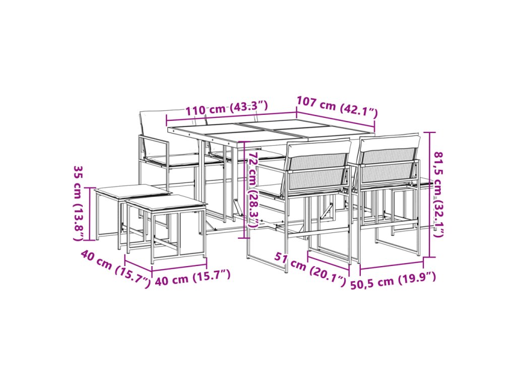Táto záhradná jedálenská súprava je skvelou voľbou na stolovanie pod holým nebom alebo len tak na oddych v záhrade, na dvore alebo na terase.